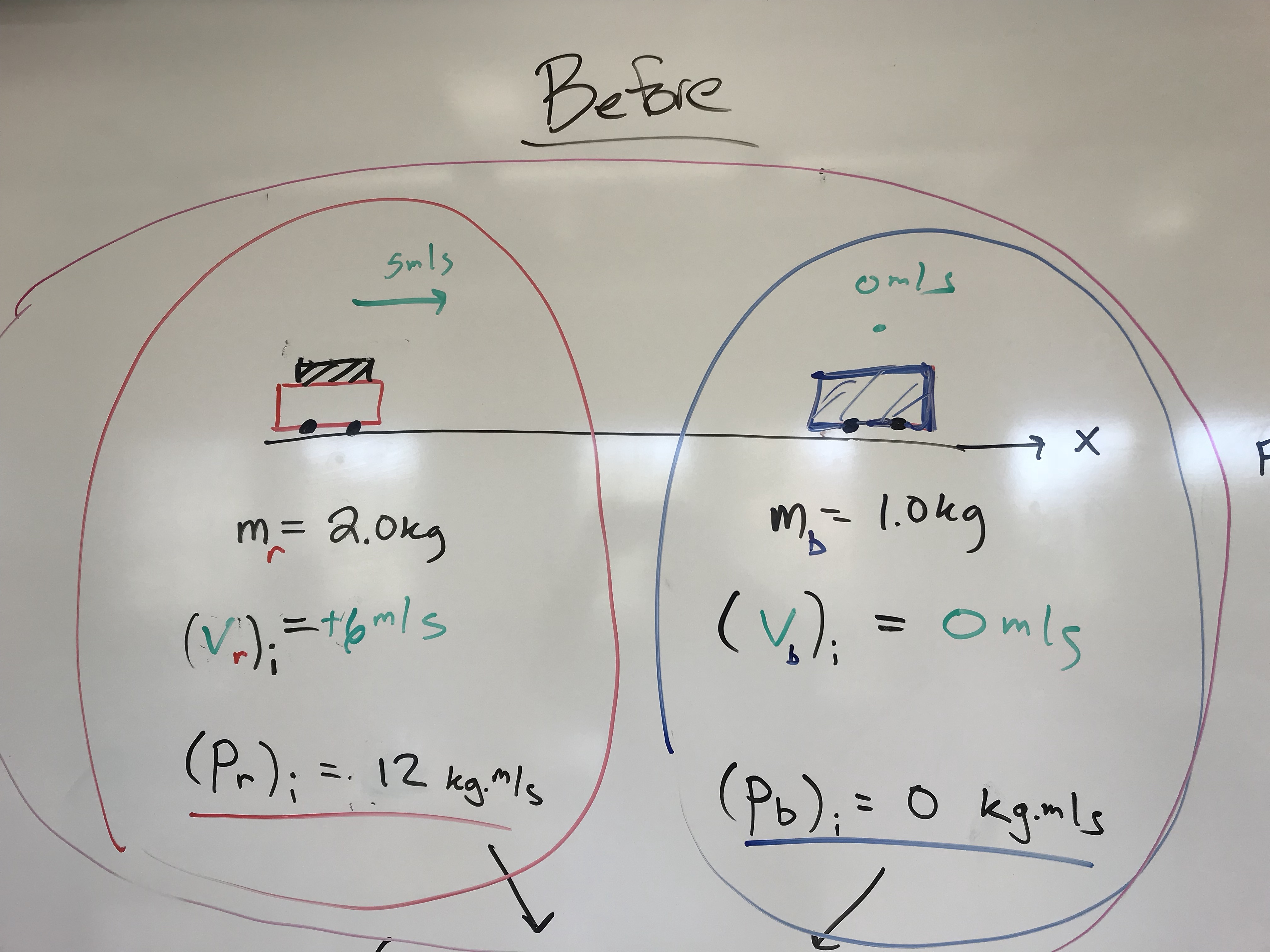 After observing and discussing qualitatively, we get quantitative, but I don’t have students predict anything. We observe and analyze it in terms of momentum, for the purpose of determining how much momentum was transferred. We draw before during after diagrams.