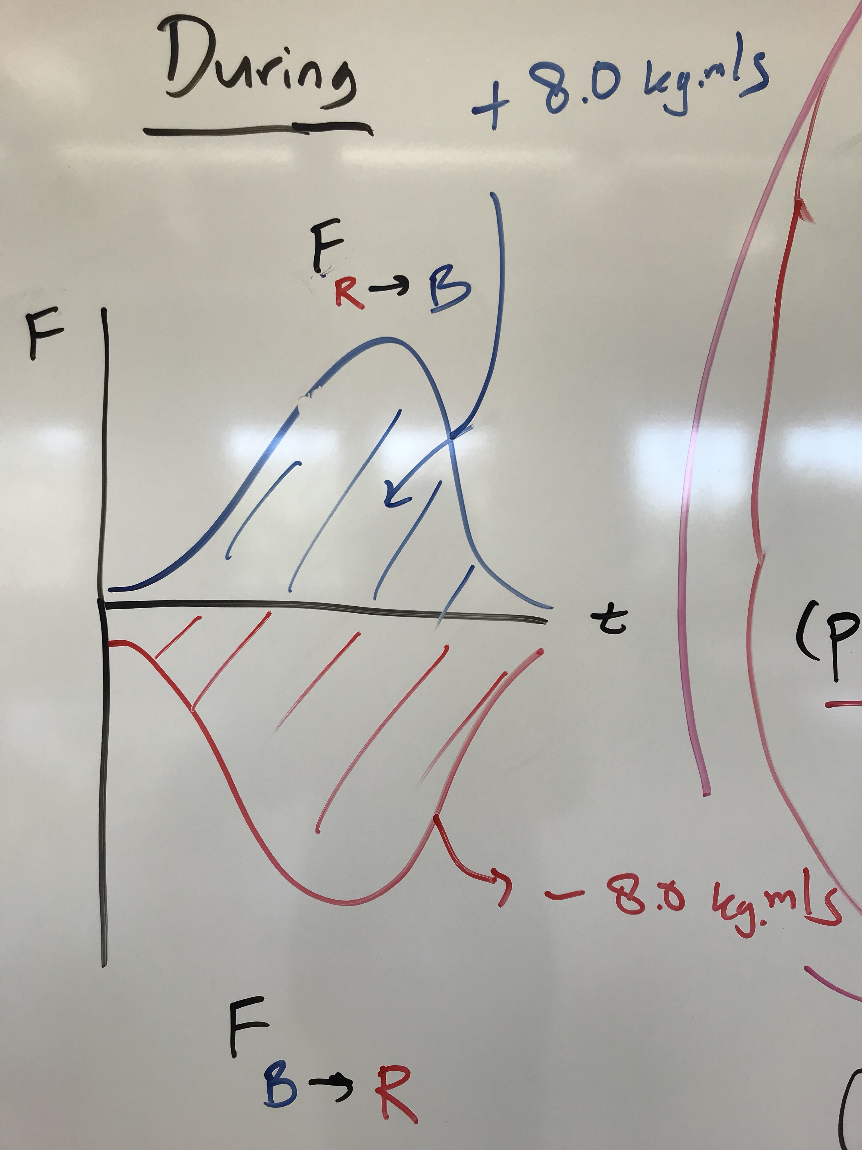 We then introduce and practice with impulse and change in momentum, both with sensors and logger pro and by hand. Clicker questions, ranking tasks, and a problem to determine the impulse and peak force of a baseball bat on a base ball.