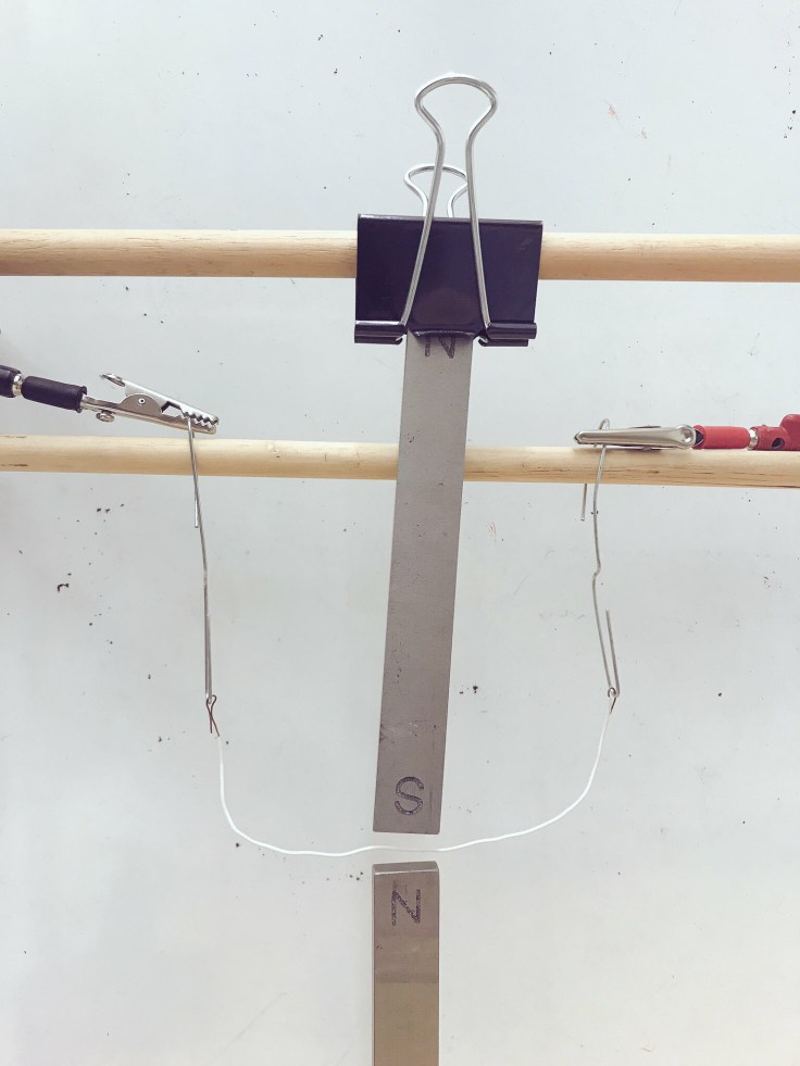 Below is the “classic” University of Washington Tutorials magnetic force on a wire set up.
