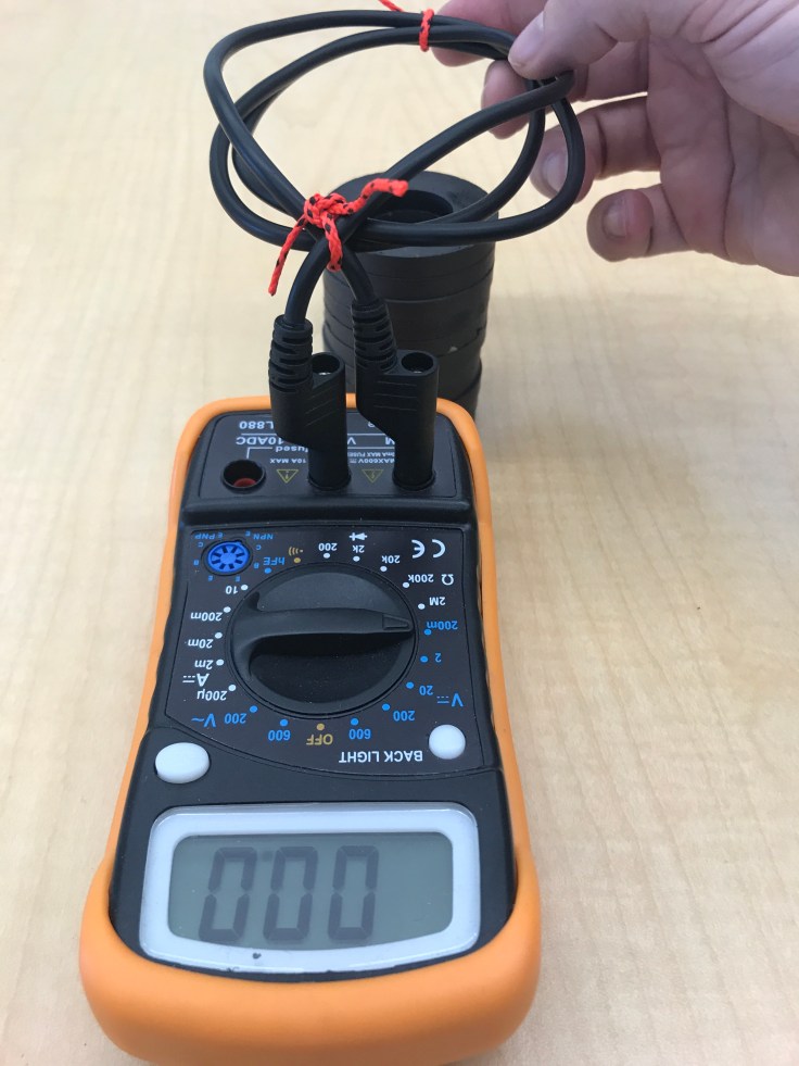 This setup below is good for exploring how changes to magnetic flux can induce current. You can squeeze the loop, rotate the loop, or move it into and out the field. Here is a short video showing how it works.